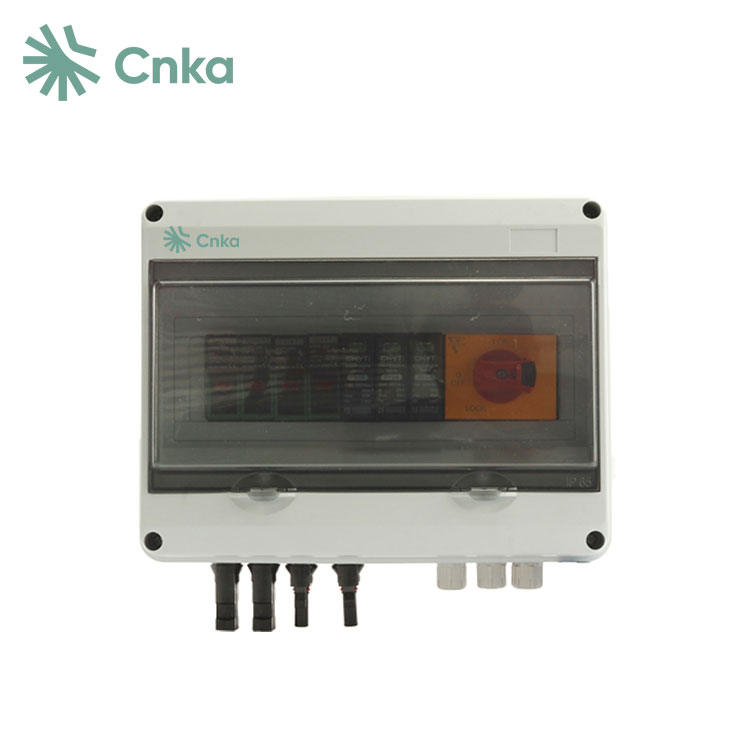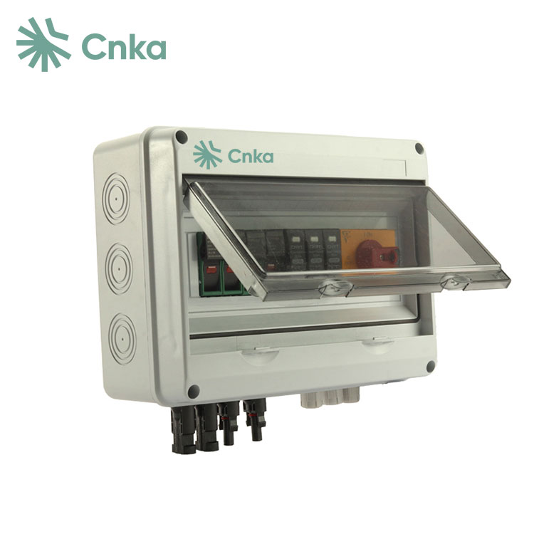 Nhà cung cấp Trung Quốc CNKA cung cấp các hộp kết hợp năng lượng mặt trời 2 dây bán buôn với hệ thống dây quang điện DC được xếp hạng IP65. Các hộp kết hợp năng lượng mặt trời 2 dây này hỗ trợ 2 chuỗi, 2 đầu vào và 1 đầu ra của sự hội tụ hiện tại quang điện DC600V. Chúng có các chức năng chống đảo ngược, quá dòng, quá điện áp và bảo vệ sét.