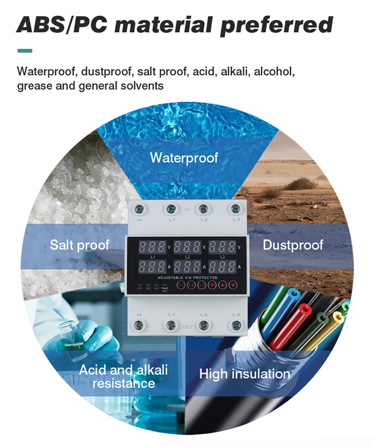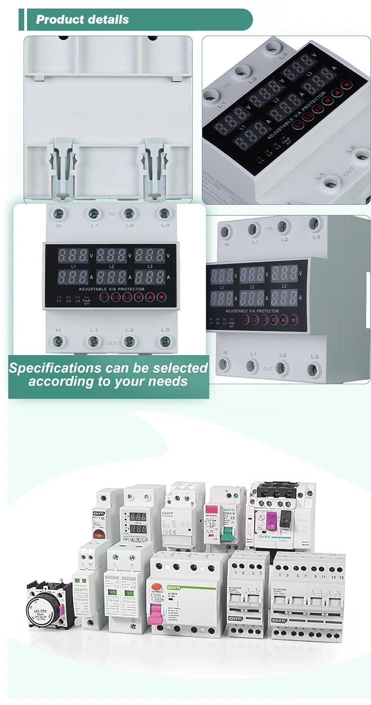 4. Bộ bảo vệ điện áp ba pha 4 cực có thiết kế mô-đun để lắp đặt đường ray dễ dàng, nâng cao hình thức và chức năng của nó.