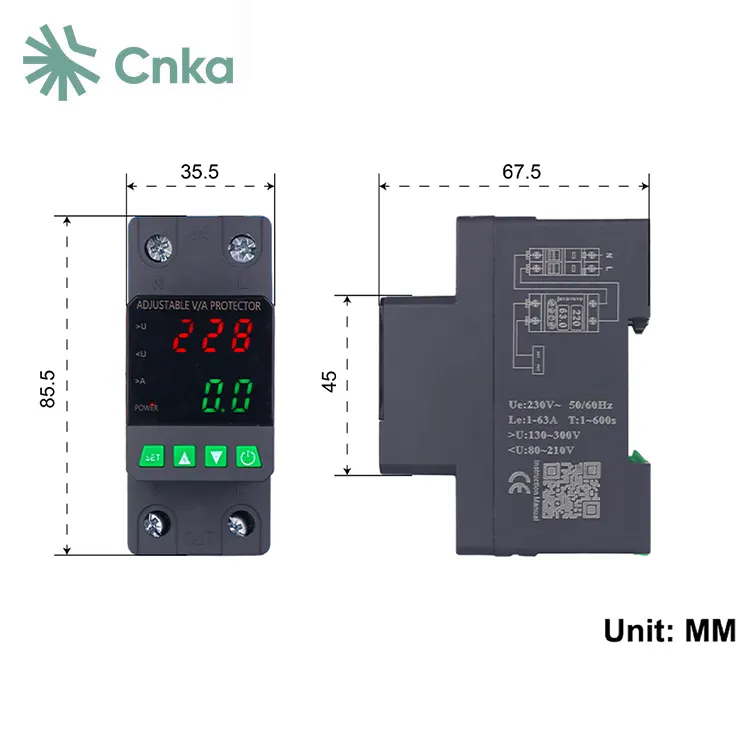 CNKA là một nhà cung cấp Trung Quốc nổi tiếng cung cấp bán buôn bộ bảo vệ điện áp màn hình kép của thương hiệu. Các thiết bị này được thiết kế dành riêng cho các mạch AC 220V, 50Hz một pha với dòng điện được định mức là 63A, khiến chúng trở thành một lựa chọn lý tưởng để bảo vệ các hộp phân phối dân cư hoặc dây cung cấp năng lượng cho thiết bị một pha.